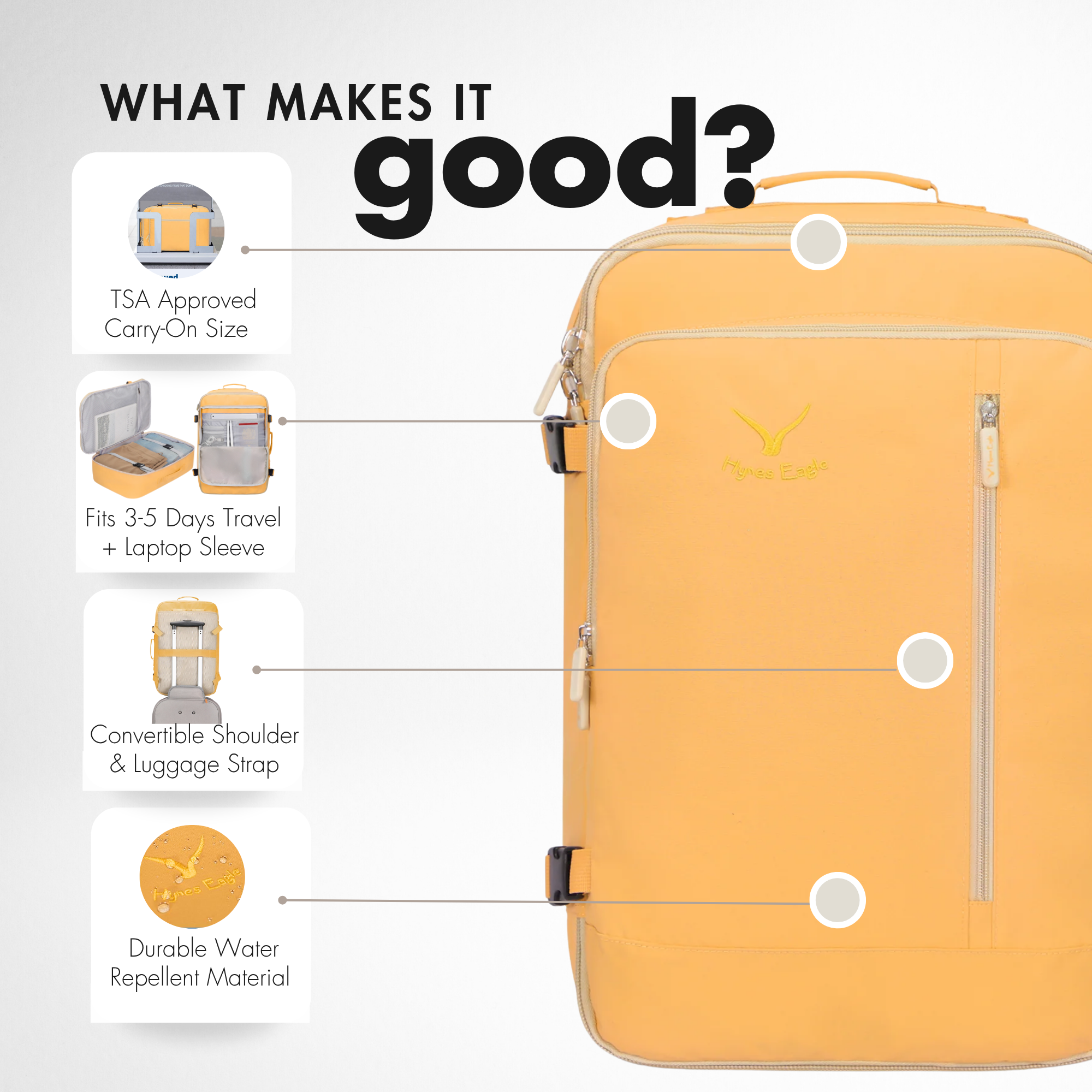 Hynes Eagle 38L Carry-On Backpack – Lightweight Travel Laptop Bag with 15" Sleeve, Water-Resistant, Flight Approved